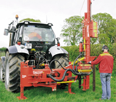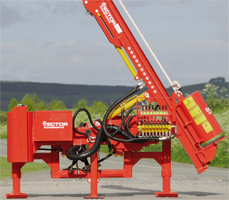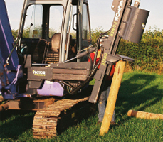 Idealisk maskin för stängselsättning för jordbruk; denna maskin tillåter stor maströrlighet i fyra riktningar. Denna rörlighet gör det möjligt för maskinisten att ha total kontroll över den stolpe som slås ned. Stolpen kan dras eller slås i alla fyra riktningar. Det fristående systemet för stolphylsan möjliggör betydligt högre hammarkraft under extrema förhållanden; det finns inte heller någon risk att hylsan lyfter bort stolpen. Kan slå ned stolpar som är upp till 3,3 m och 375 mm i diameter.