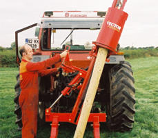 Stolpsättare för storskaliga lantbruk eller mindre maskinstationer. Denna stolpsättare har inga begränsningar när det gäller sidledslutningar. Den klarar upp till 30 grader åt båda håll.